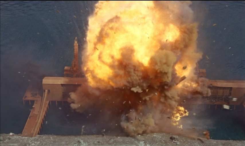 Bond parvient à dérégler le réacteur nucléaire alors que la fusée américaine est en train de décoller.