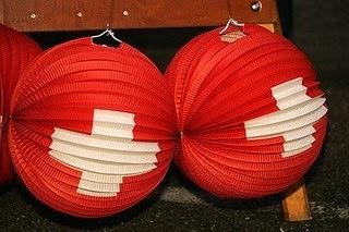 Nous n'oublierons pas le légendaire chocolat Suisse dont la renommée n'est plus à faire et les lampions rouges à croix blanche, un des éléments de ce 1er août (ils ne se mangent pas,
